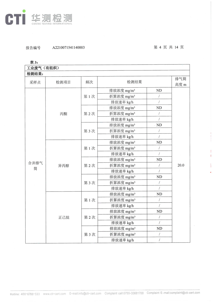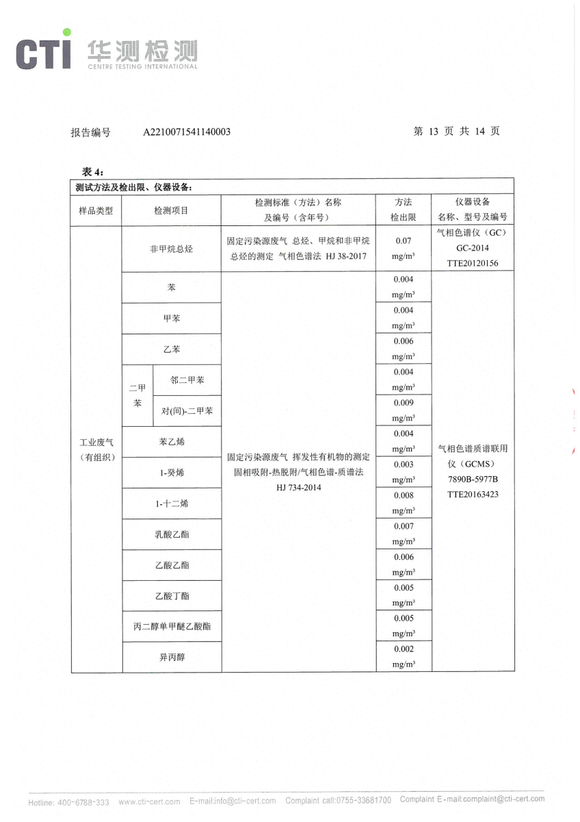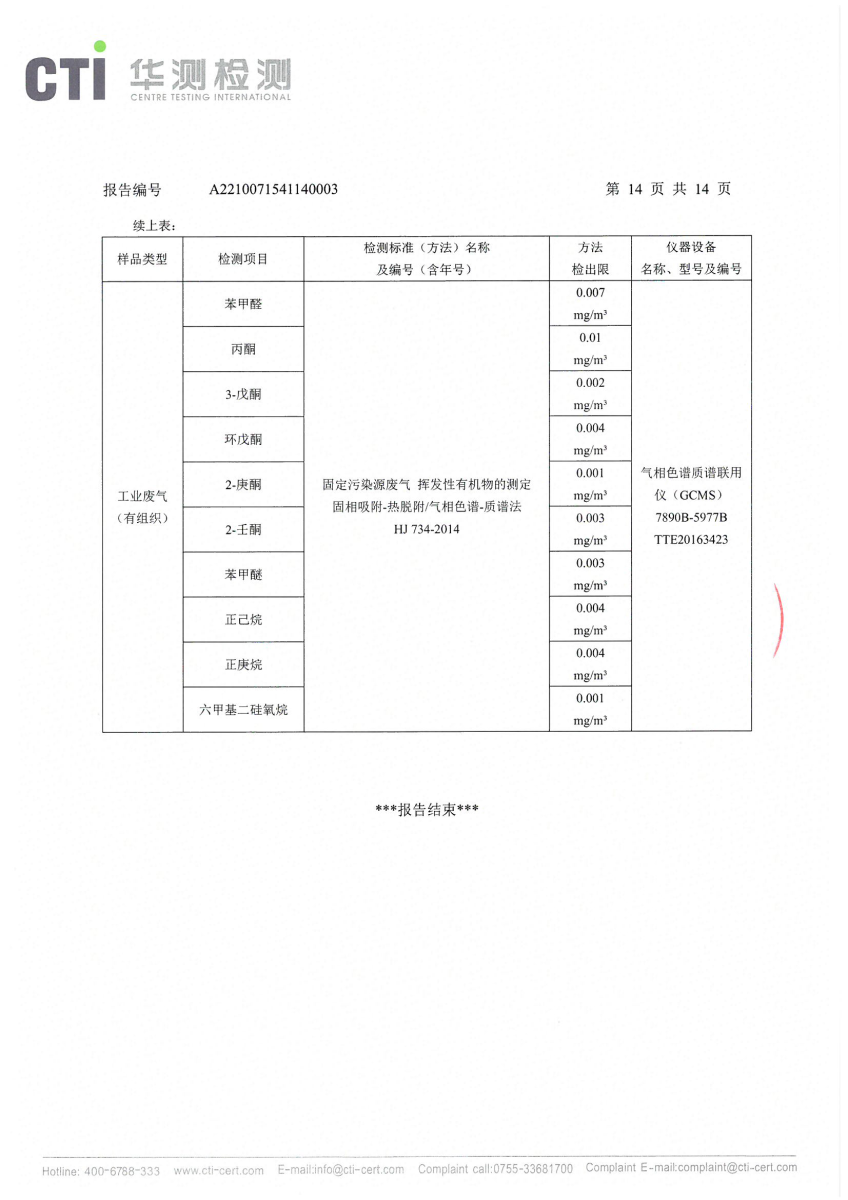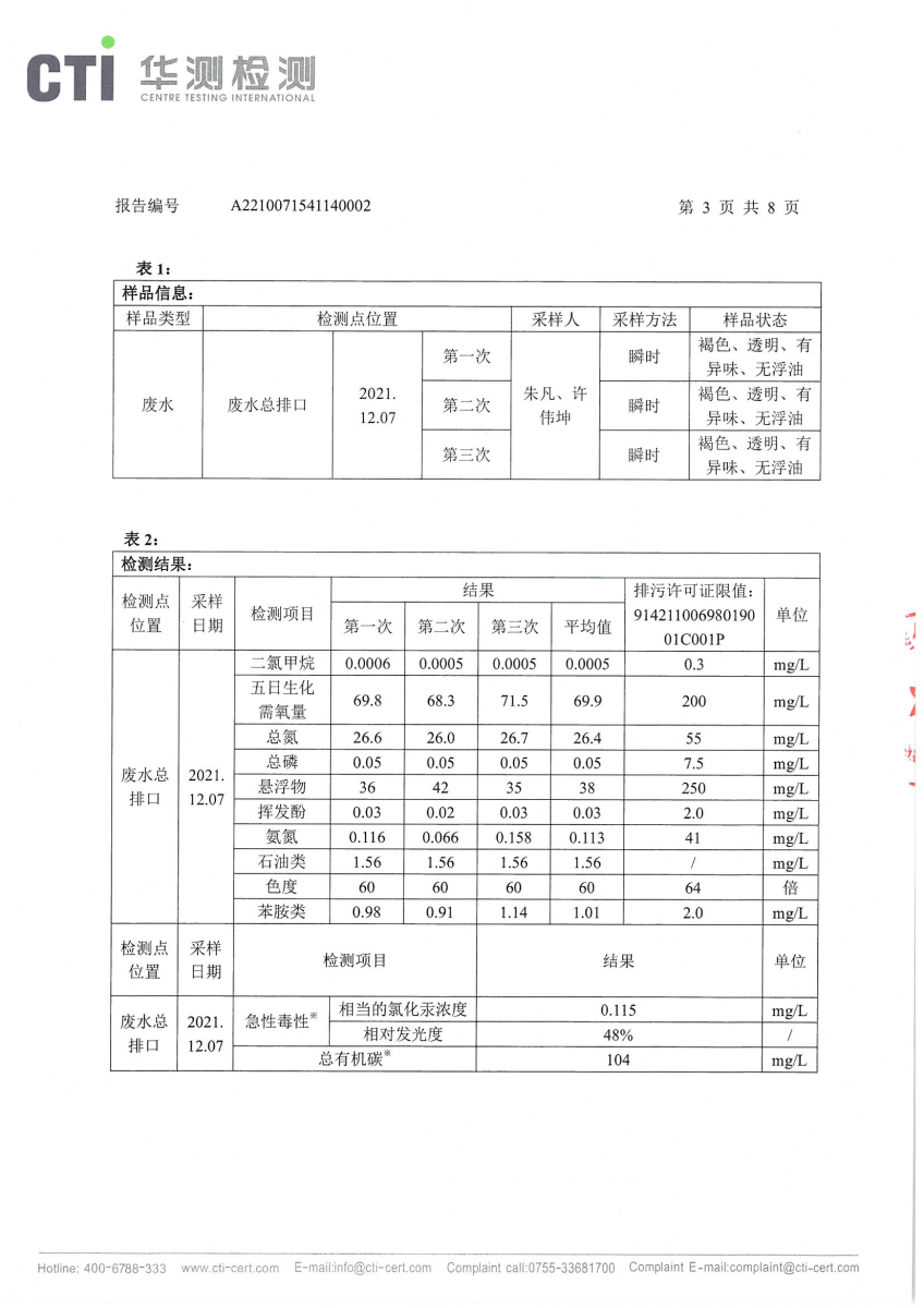 2021年第四季度,公司按照国家企业安全生产标准,对公司所排出的污染源,委托第三方进行抽样检测,详细的检测报告如下