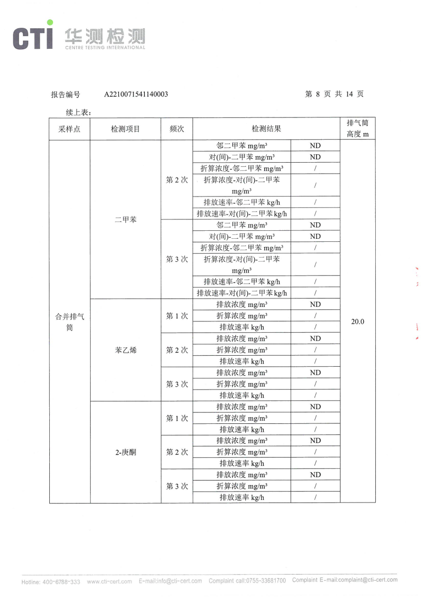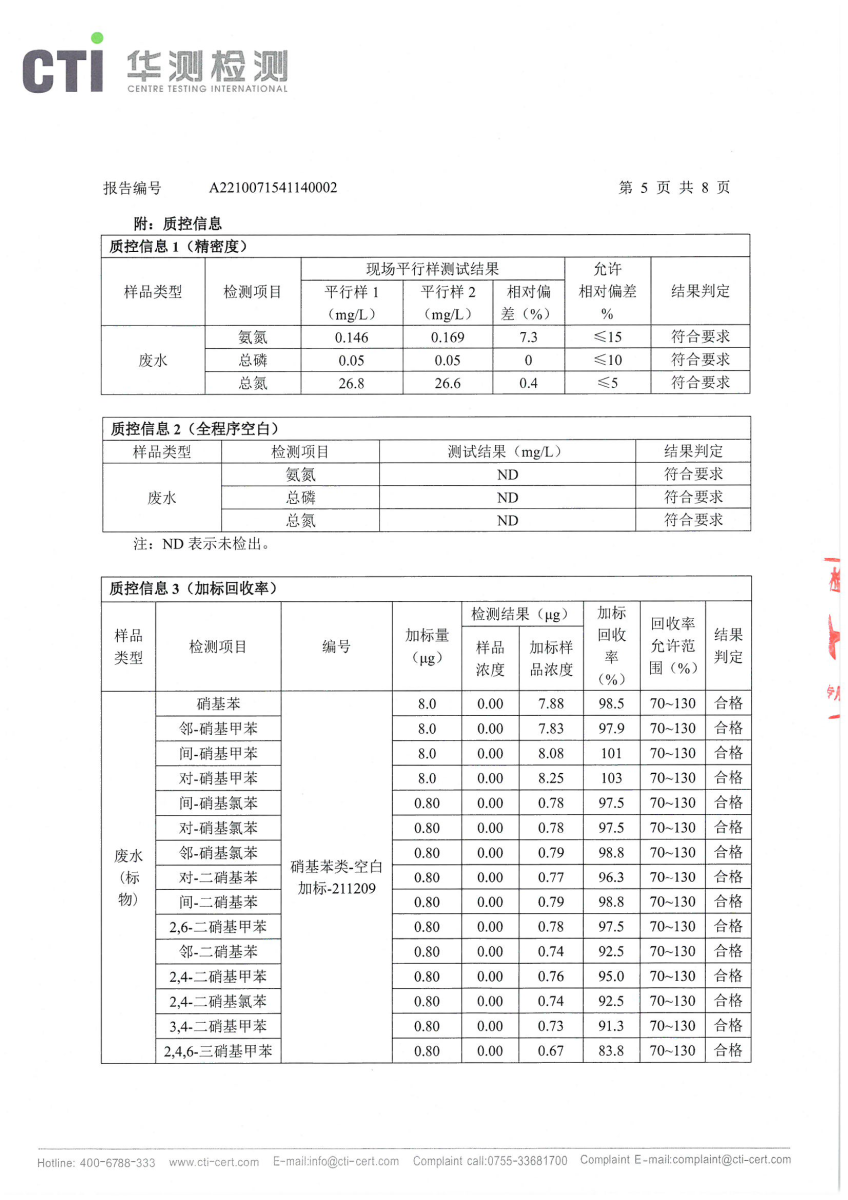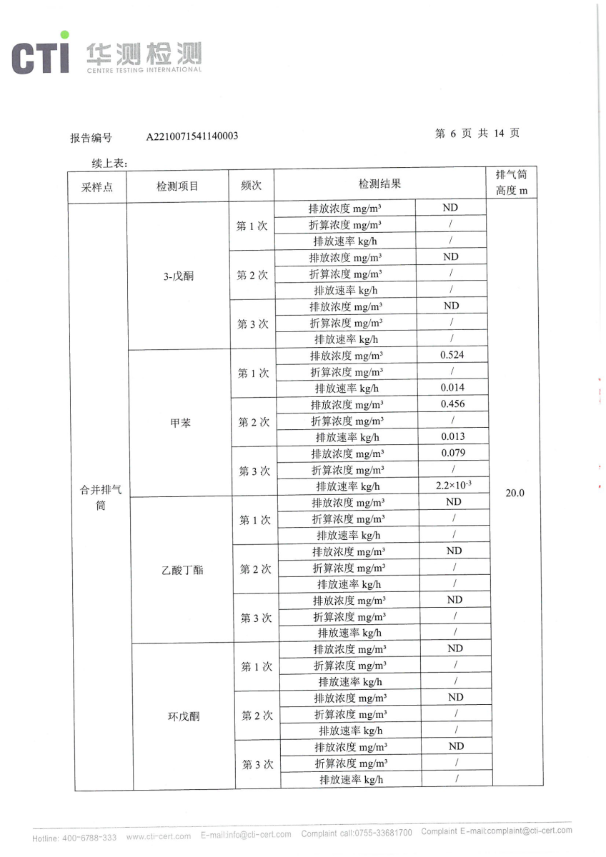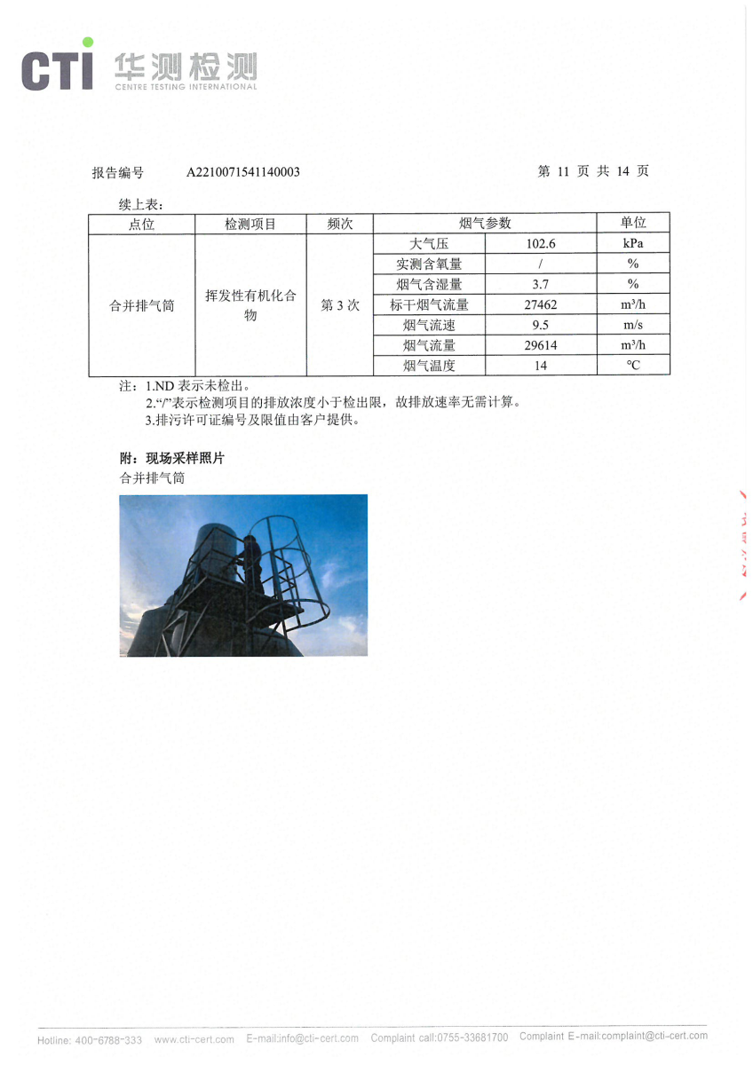 2021年第四季度,公司按照国家企业安全生产标准,对公司所排出的污染源,委托第三方进行抽样检测,详细的检测报告如下